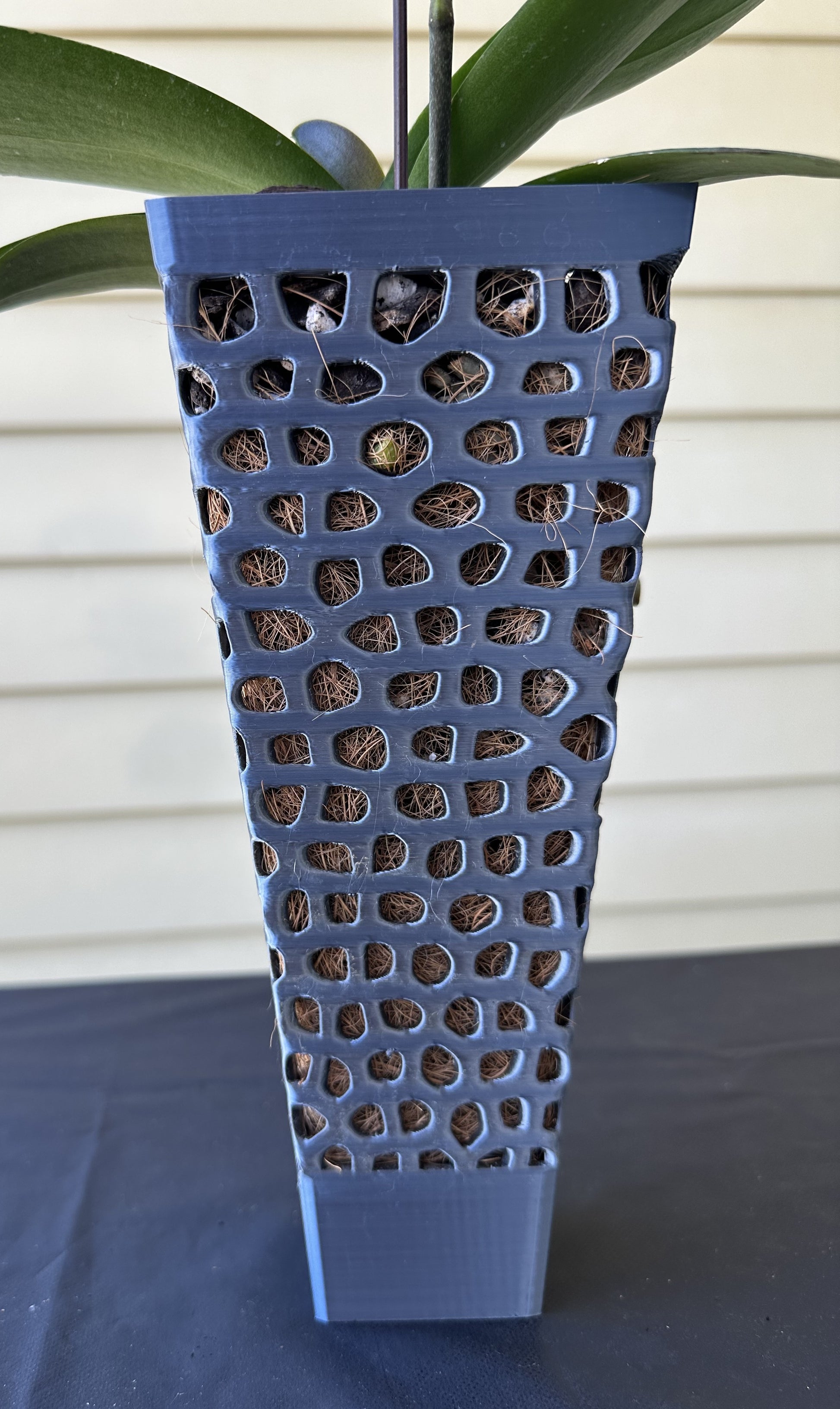 Orchid Growing & Display Pot - Tall 4-sided H 24cm x Top 10cm x Base 5cm